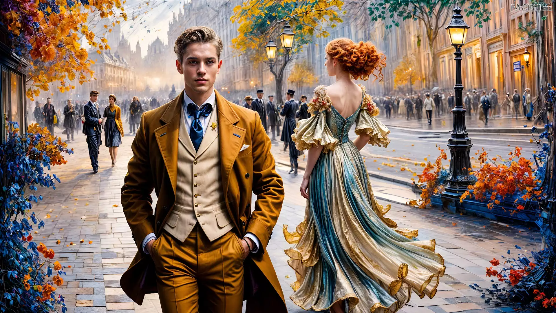 Grafika, Mężczyzna, Rudowłosa, Kobieta, Garnitur, Ulica - faceci.biz