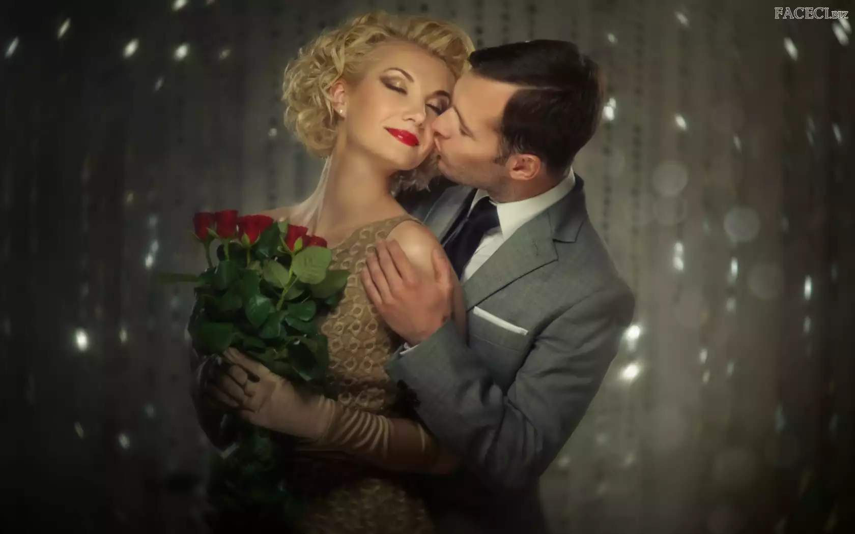 Romantycznie, Róż, Para, Bukiet - faceci.biz